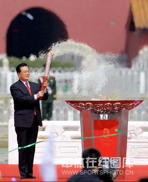 奥运火炬接力启动 胡锦涛主席点燃圣火盆